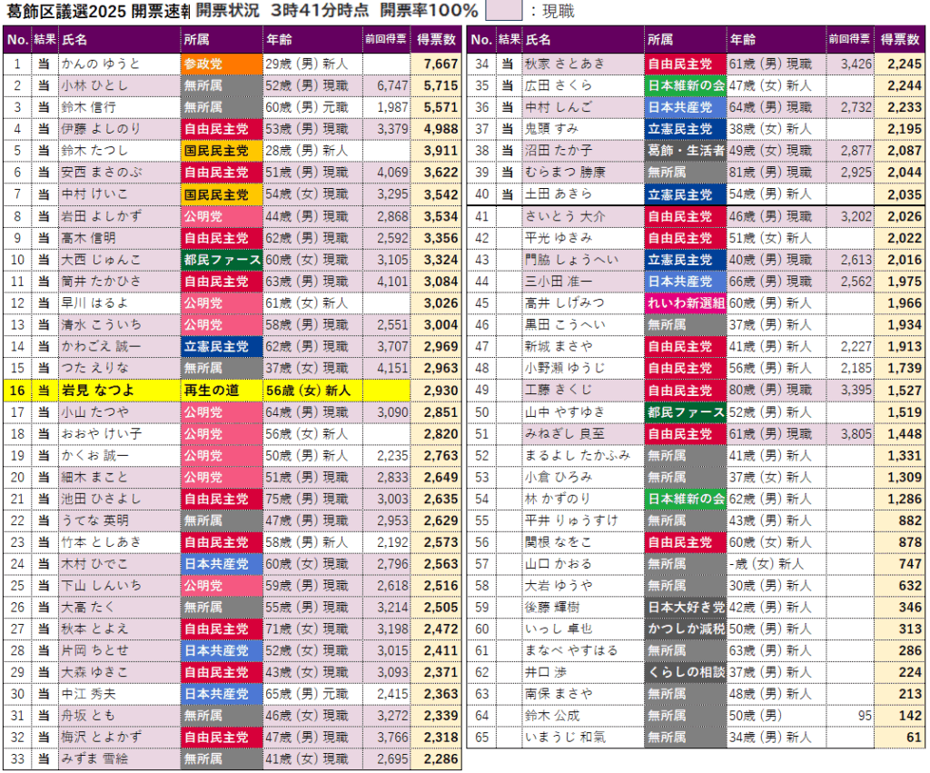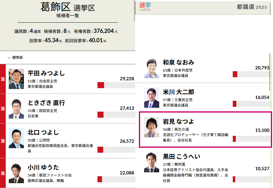 葛飾区議会議員選挙2025 予想される顔ぶれ