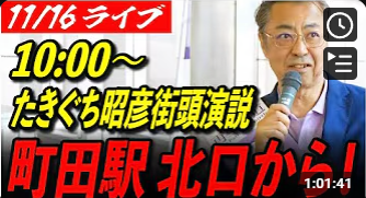 明日 11/16、たきぐち昭彦が街頭でご挨拶とスピーチを行います。 市民の皆さんと対話できれば幸いです。 お近くを通られた際は、ぜひお気軽にお立ち寄りください。 なお、場所に変更がある場合は、Xにてお知らせいたします。