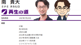 01再生の道メンバー(党員) 「南 貴大」再生の道候補予定者(荒川区) 新着情報「再生の道」最終選考面接動画2021都議選結果予想される顔ぶれ地図(荒川区) 2025.04.29 01再生の道メンバー(党員)